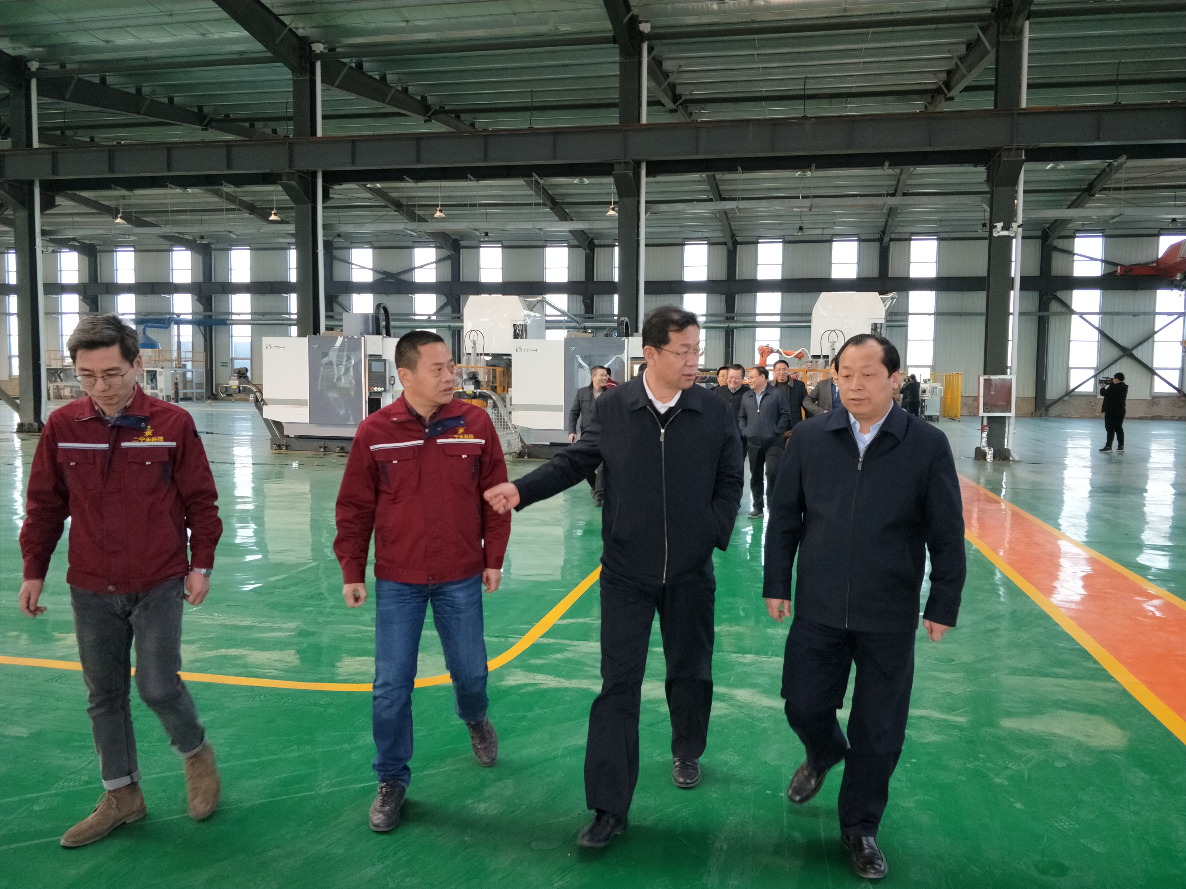 靳新遠(yuǎn)副局長(zhǎng)一行在生產(chǎn)現(xiàn)場(chǎng)調(diào)研,參加座談會(huì)。